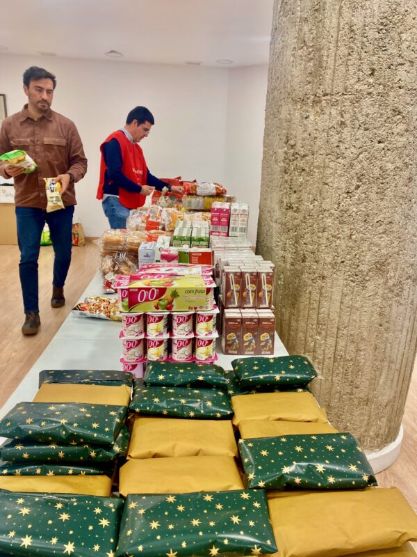En este contexto, la Campaña de Reyes volvió a convertirse en un gesto concreto de solidaridad y encuentro. El pasado 6 de enero, un total de 36 voluntarios —24 estudiantes de la escuela y 12 voluntarios externos— se organizaron para repartir 90 bolsas de comida en 14 zonas de la ciudad. Cada bolsa incluía dos bocadillos, dulces, fruta, zumo, conservas, un caldo caliente para aliviar el frío, una postal artesanal con mensajes de cariño, ropa de abrigo y una hoja informativa de los recursos sociales disponibles en Barcelona.