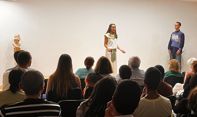 L’activitat va combinar una breu escenificació teatral amb exposicions teòriques, facilitant als assistents endinsar-se en el text dels diàlegs Timeu i Críties de Plató.